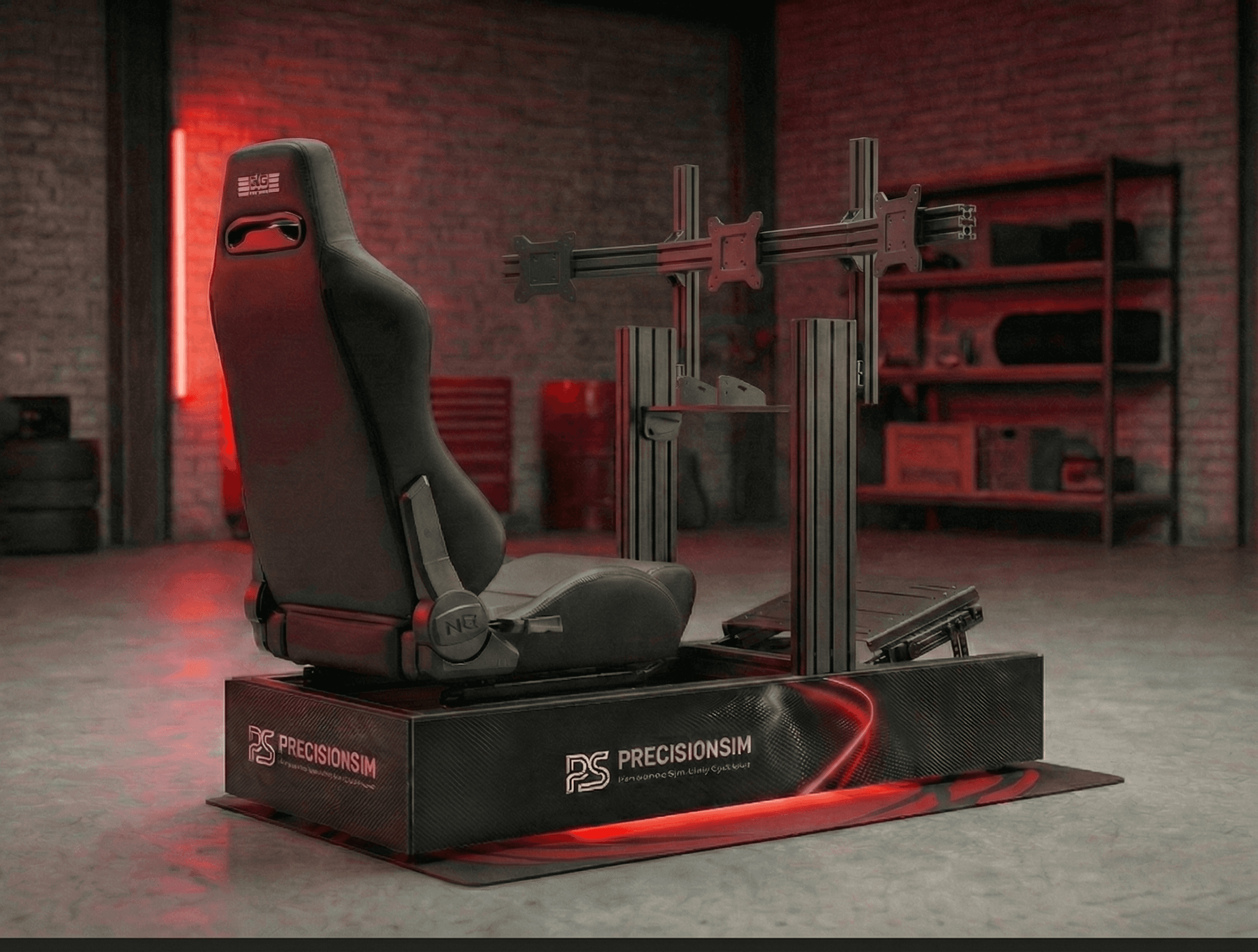 Trzy ultraszerokie, 34-calowe ekrany QHD 144 Hz otaczają kierowcę, tworząc panoramiczne pole widzenia i pełne zanurzenie w torze. Wysoka częstotliwość odświeżania gwarantuje płynny obraz, a szeroka perspektywa pozwala poczuć się jak w prawdziwym kokpicie wyścigowym.